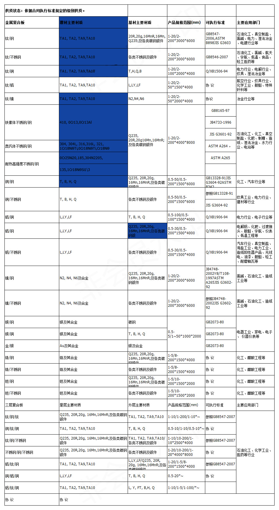 寶冶鈦鎳金屬復合板品種規(guī)格
