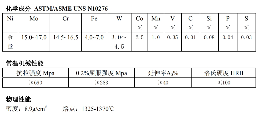 C-276 合金是一種含鎢的鎳-鉻-鉬合金,含有極低的硅和碳。通常被認為是萬能的抗腐蝕合